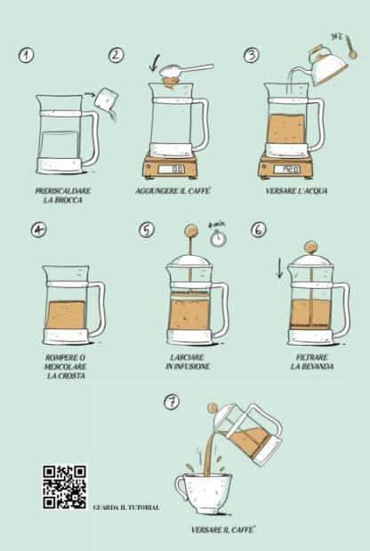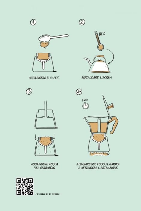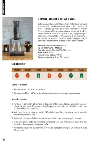 Ogni metodo di estrazione (French Press, Areropress,V60 Hario, Siphon, Chemex,Kalita, Moka. Napoletana, Clever Coffee, Dripper, Macchina filtro elettrica, Cold Brew Drip, Cold Brew Infusion, Ibrik, Flower Kalita, Flower Chemex, Metal Dripper, Metal Cone, Kompresso, Bravo Brewer) è racchiuso all’interno di una scheda che ne racconta storia, caratteristiche e parametri di preparazione, tutto supportato da Qr-Code che rimandano a video tutorial che rendono Brewing in un libro un vero e proprio supporto interattivo.
