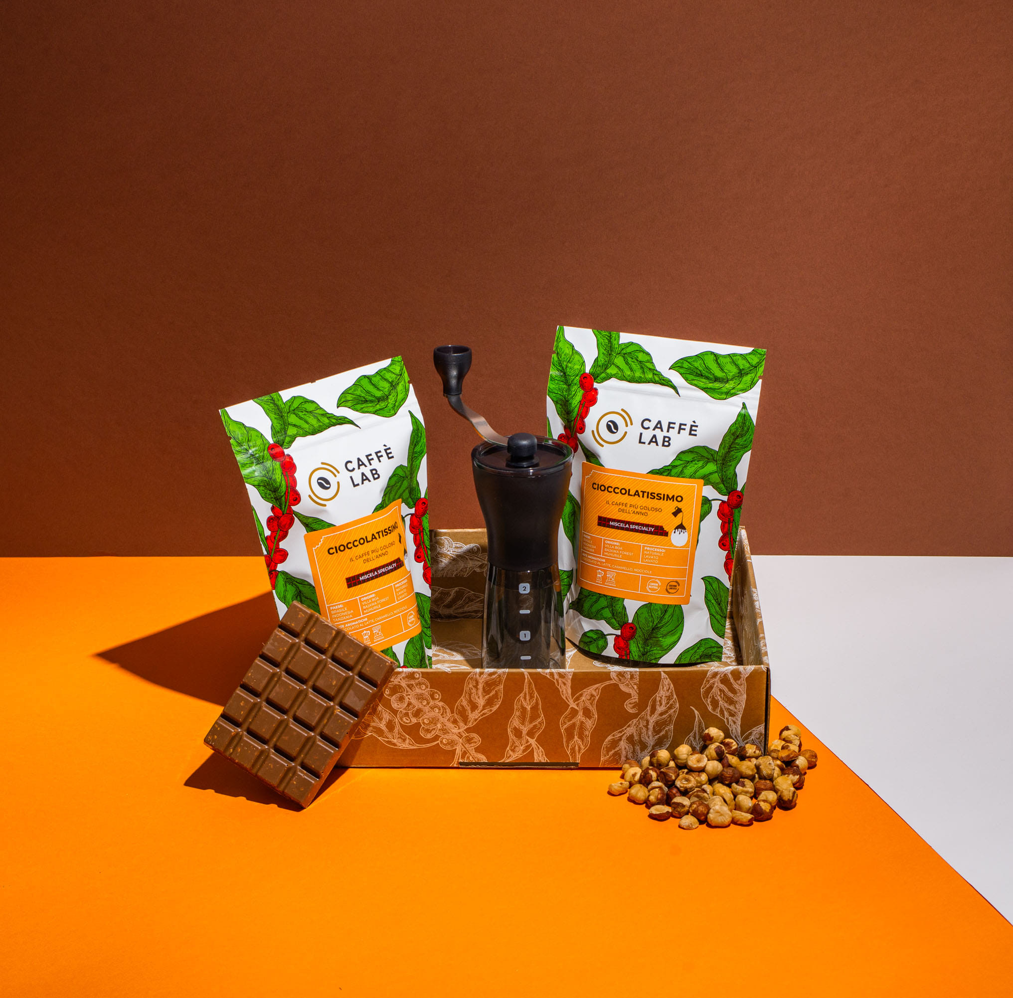 Il lato goloso del caffè. 2x250gr miscela limited edition + 1 macinacaffè manuale Hario Mini Mill Plus