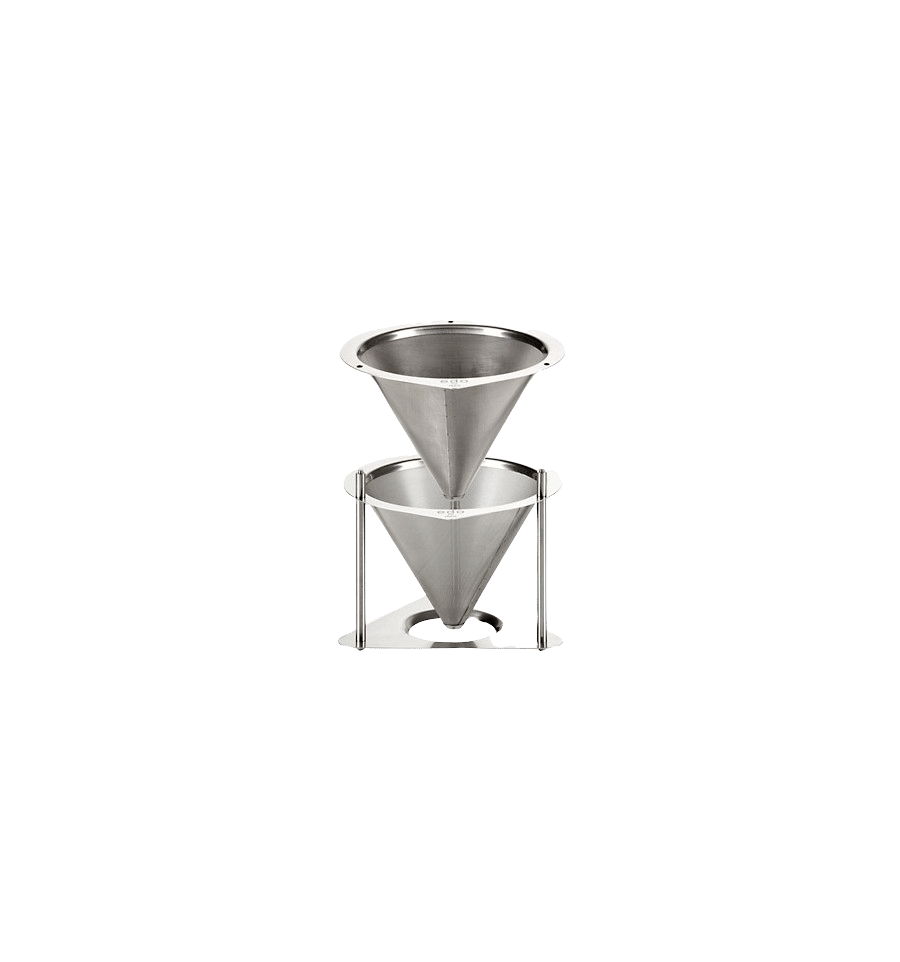 Il Duo Drip è un doppio cono in acciaio inox. Un innovativo metodo di estrazione che permette al barista di ottenere una perfetta turbolence usando diverse ricette e combinazioni.