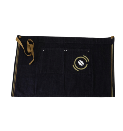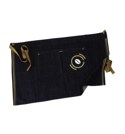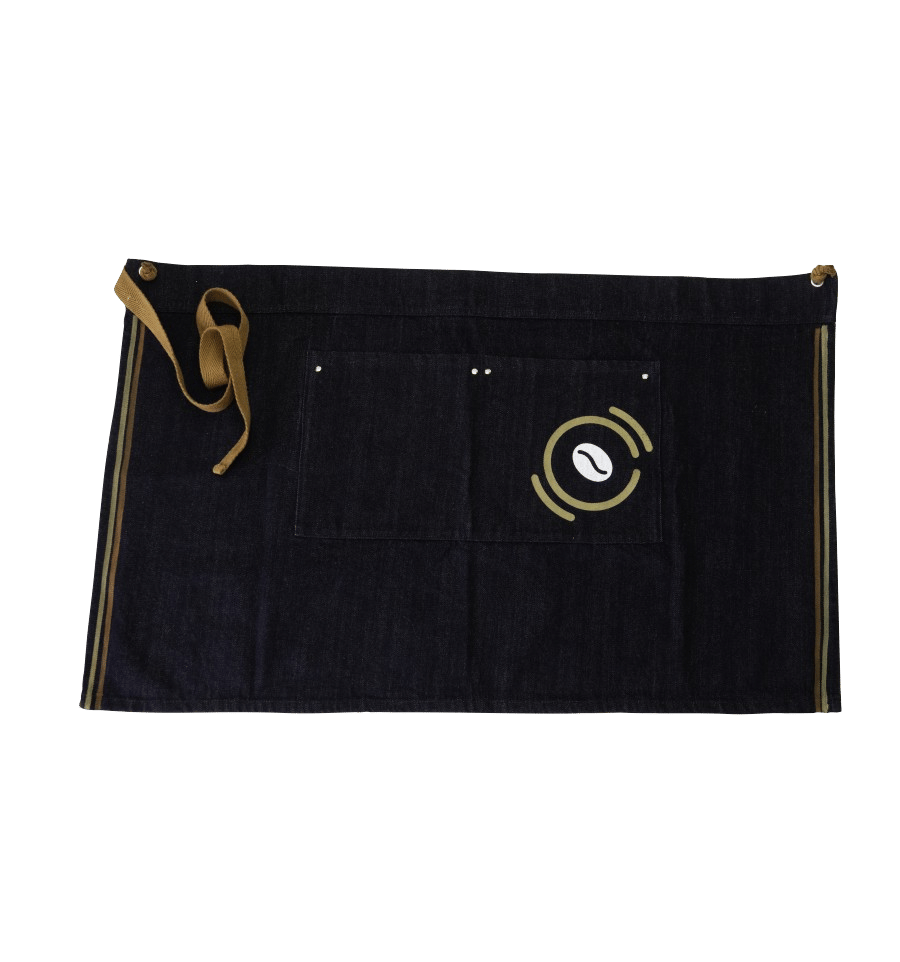 Questo modello di grembiule in jeans è la versione corta. Interamente in Jeans blu scuro, permette anche al barista che non ama i grembiuli con pettorina, di non coprire la propria divisa o la propria Coffee T-Shirt preferita. Due grandi tasche permettono di tenere sotto controllo tutti gli “attrezzi del mestiere” e i lacci in cotone naturale si intonano alla perfezione col logo Caffèlab.