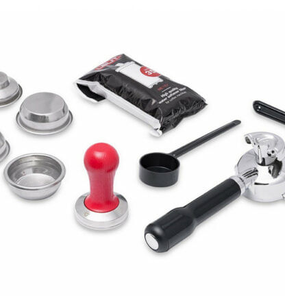 Il portafiltro professionale Lelit ergonomico da 58mm puo èssere utlizzato con uno dei 3 filtri (9-11gr/14-18gr/18-21gr) che sono in dotazione insieme a 1 pressino Lelit da 58mm, un kit detergenti per macchina per espresso, uno spazzolino per la pulizia della guarnizione sottogruppo e un filtro addolcitore a resine.