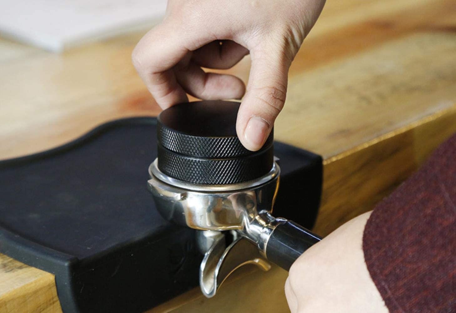 Questo livellatore è composto da due parti: una nera, che appoggia perfettamente sul bordo del filtro e l’altra in acciaio (simile ad una ventola). Ruotando, promette di distribuire perfettamente il caffè nel filtro prima della pressatura.