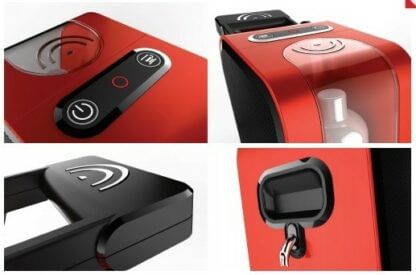il rifornimento idrico avviene mediante una pratica bottiglia da mezzo litro, inserita in un vano trasparente per la verifica del livello dell’acqua. Il sistema di chiusura centrale a cloche (molto particolare) permette una chiusura ottimale della cialda e quindi una migliore infusione del caffè.