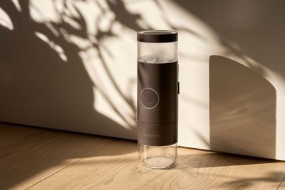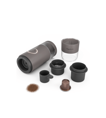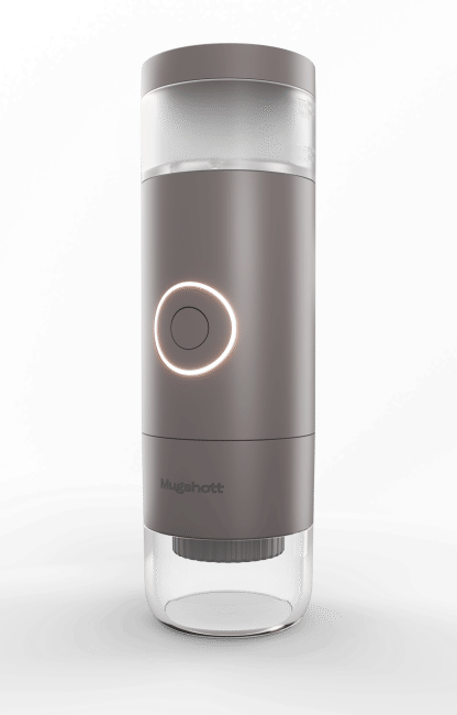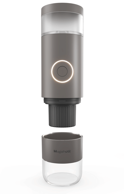 Mugshott è la caffettiera portatile per espresso pensata per chi vuole gustare un caffè espresso in viaggio, al lavoro, in campeggio o ovunque non sia disponibile una macchina tradizionale. Grazie al suo design compatto e robusto, Mugshott è facile da trasportare e semplice da utilizzare. Con soli 7,6 cm di diametro e 24 cm di altezza, pesa appena 752 grammi ed è disponibile su caffelab nella elegante finitura color tortora nominata "Storm".