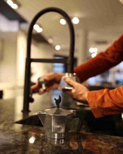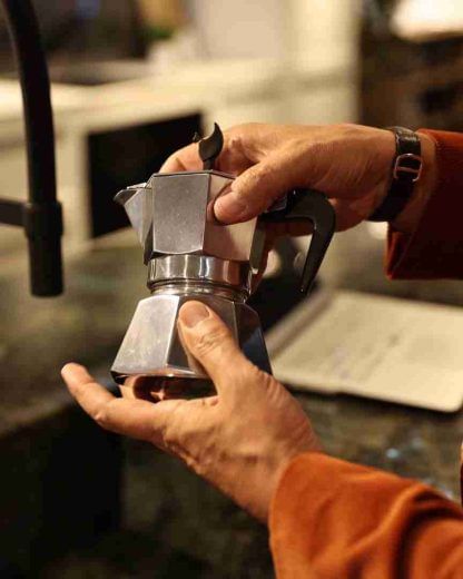 - Attendere l’uscita del caffè e, appena completata l'estrazione, rimuovere la moka dal fornello.