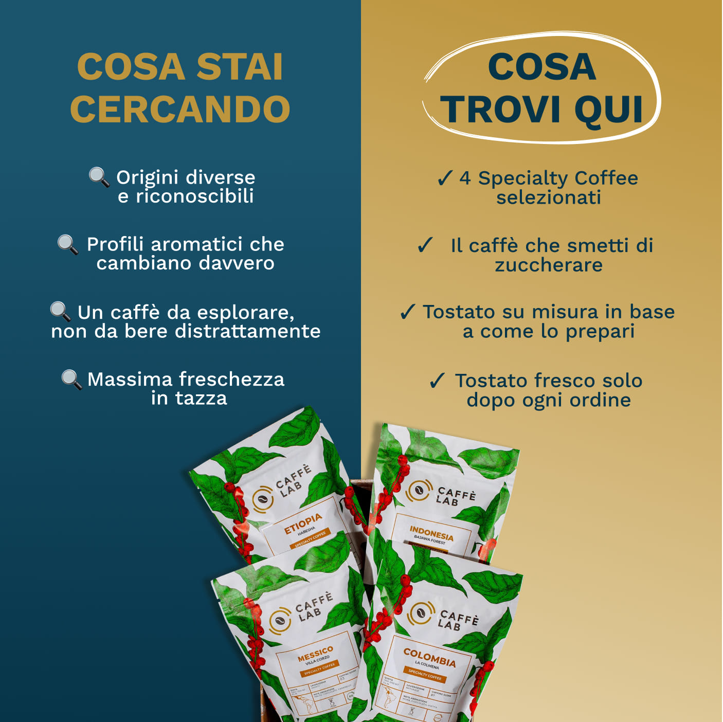 - cerchi caffè con una storia, non prodotti standardizzati