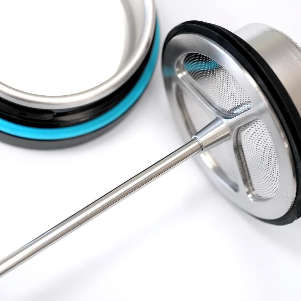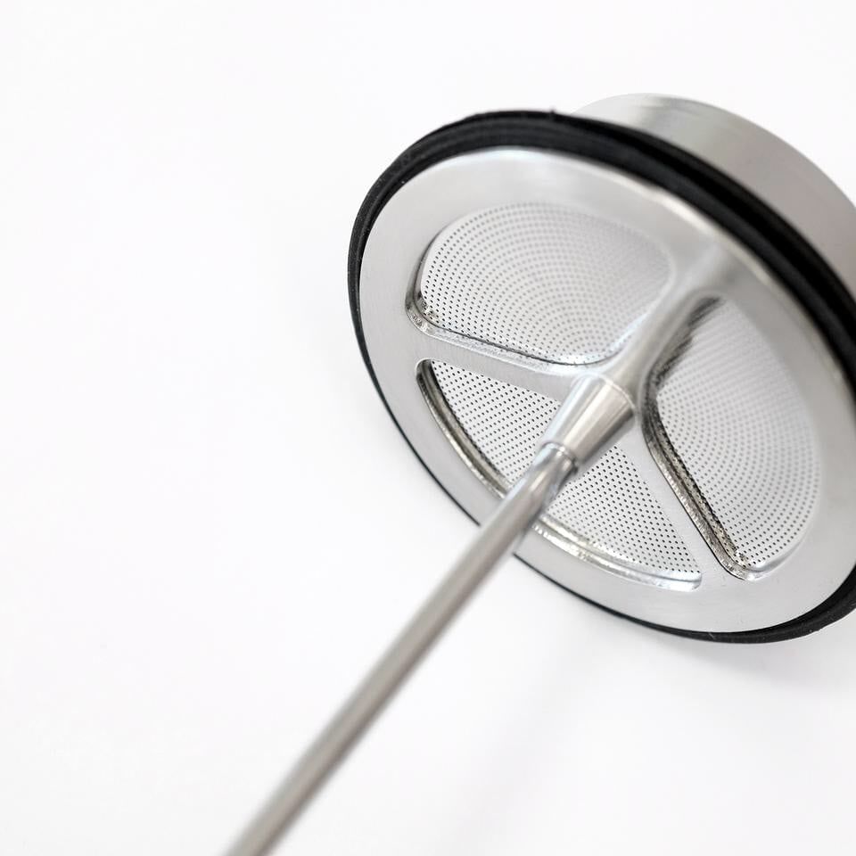 - Agganciare un ulteriore filtro al pistone che utilizzate anche per la French Press per trattenere al meglio tutte le particelle di caffè macinato e premere il pistone.
